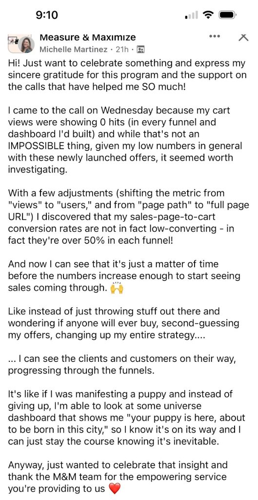 “I’m LOVING Measure & Maximize and all the other courses and goodies I’ve been going through as part of the program”